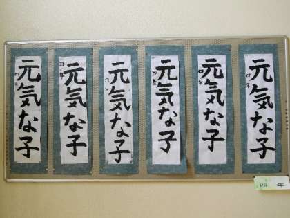 4年の掲示板に書写の作品が飾られました。「元気な子」という文字どおり、風邪のはやる季節でも寒さにまけずに元気よく運動していきましょうね。