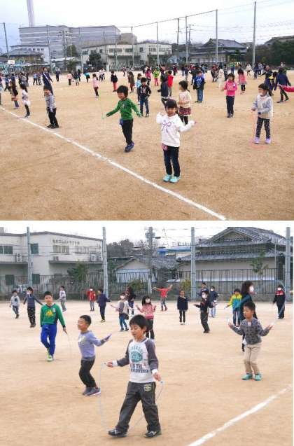 1・2年生のなわとび集会がありました。さあ、何回跳べるようになったかな。元気よく身体を動かしてなわとびしようね。カードには何回とべるようになったか記録しています。