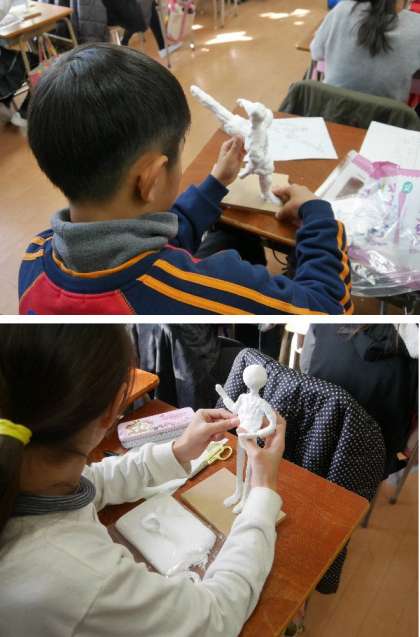 いよいよ、今週末には作品展があります。6年の作品も急ピッチに仕上げています。将来の夢、なりたい自分を人形像にします。