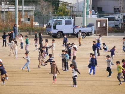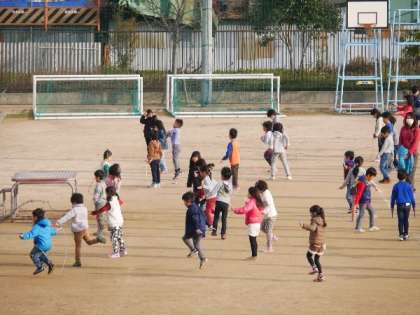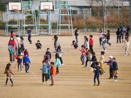 1・2年生のなわとび集会です。みんななわとびが大好きです。一生懸命にとんで、元気いっぱいです。