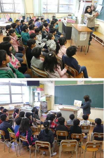 図書ボランティアさんによる読み聞かせです。5年生は先週の学年閉鎖で延期されたパネルシアターがありました。1・2年生でも読み聞かせがありました。