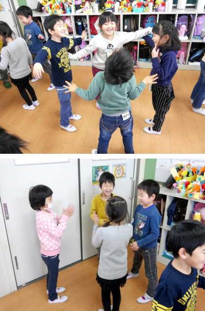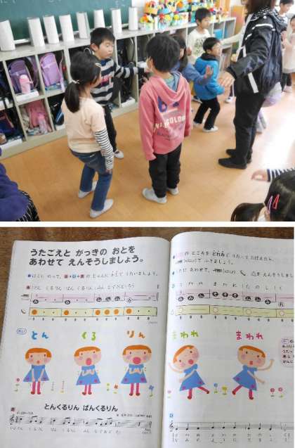 1年生が、うたにあわせて、みぶりをつけてうたっています。とっても楽しそうです。