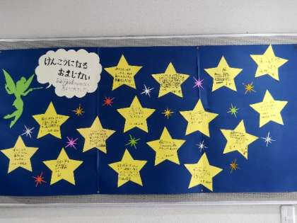 今回の保健室の掲示は、保健体育飯野児童によるコメントです。風邪をひかずに健康でいているためのノウハウを書いてくれています。