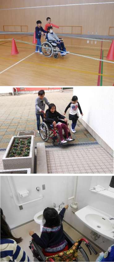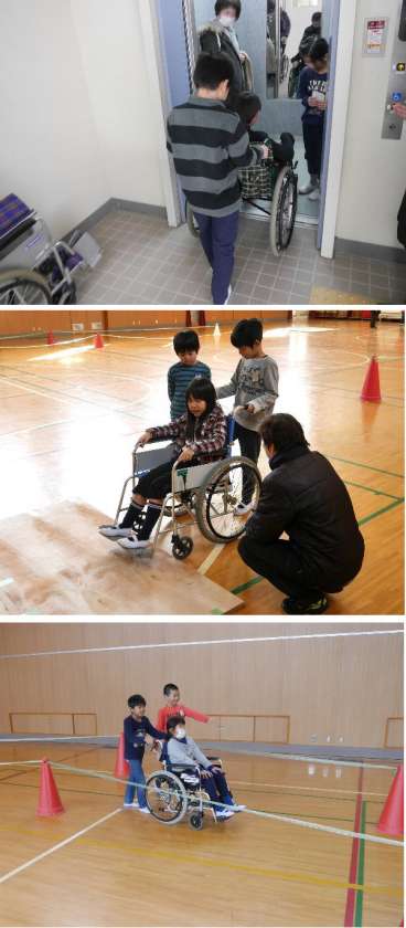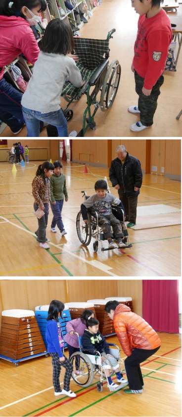 体育館でも、保護者や地域の方々のご協力をえて、ジグザグコースや段差体験をおこないました。たくさんの方々に関わっていただきました。子ども達もよい体験学習をすることができました。ありがとうございました。