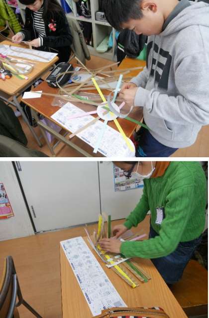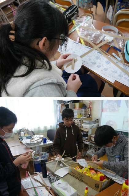 6年生の図工です。紙テープを使った作品づくりです。生活に役立つ小物入れやかごなどを作ります。クラフトやカラーの紙バンドを組み合わせてあんでいきます。なかなかむずかしいです。ぜひ役に立つものを作ってつかってください。