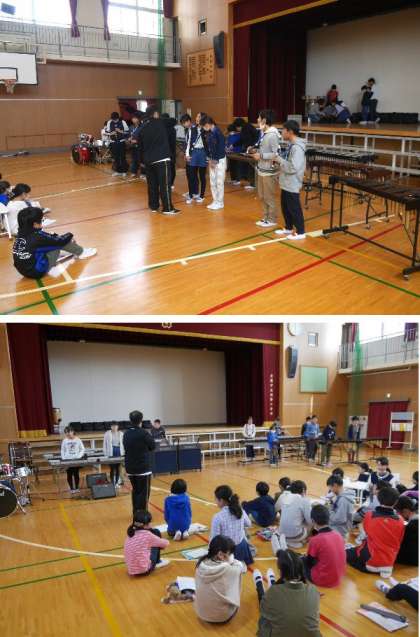 6年最後の音楽発表会は、土曜授業でおこないます。講堂での舞台練習が始まりました。楽器を講堂に運び入れて、演奏位置を確認しています。