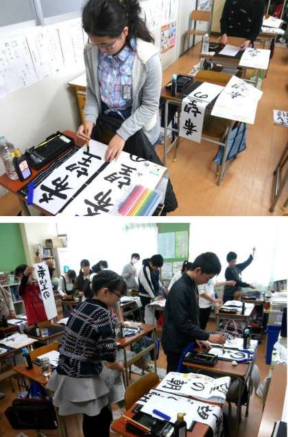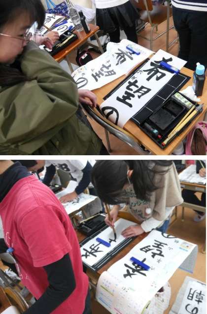 6年生が書写で「希望の朝」とていねいに書いています。修学旅行で見たあの朝の素晴らしい朝日をおもいだしました。