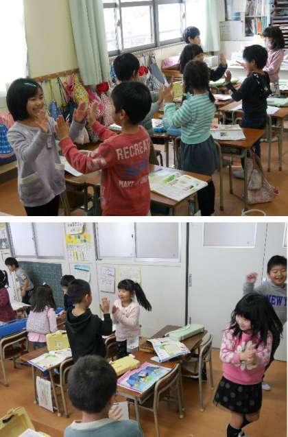 1年の音楽で「とんくるりん ぱんくるりん」という歌を身振りをつけて歌います。ペアで仲良く楽しそうです。