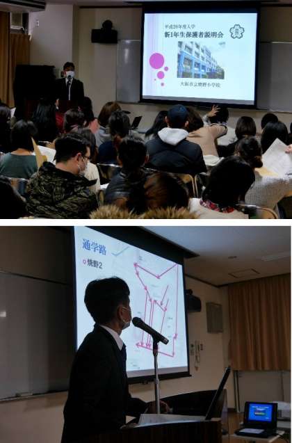 4月に入学してくる新1年生の保護者説明会をおこないました。校長先生のお話しのあと、10程度の1年行事や学校紹介のDVDを上映しました。また、用意してほしい物品の説明や事務手続き等の説明をしました。