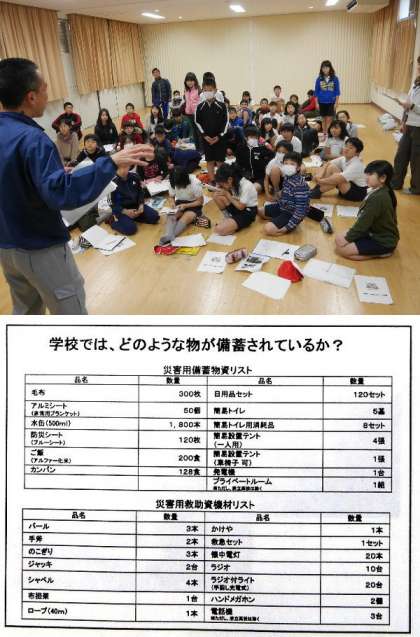 5年生では、地域でおこなっている、「防災」「減災」のための取り組みのお話しをききました。鶴見区役所から防災担当の方にきていただき、説明してもらいました。学校に備蓄されている物品など、やくわかりました。