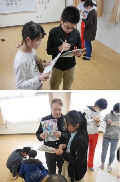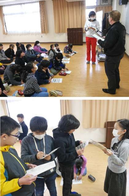 6年生の英語の授業です。中学校からネイティブのスティーブ先生がきてくれています。6年生の授業は今日が最後です。What time do yo get up?と時間を聞いて、互いに時間を聞いて記録します。I get up at 7:00.と答えていました。go to schoolなどいろいろな生活に関する時間を聞いていきます。コミュニケーションが楽しそうです。