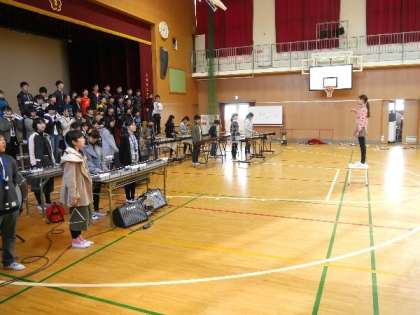 講堂で6年生が音楽発表会の練習をがんばっています。いよいよ今週末、土曜授業で発表します。小学校の最後の発表会です。
