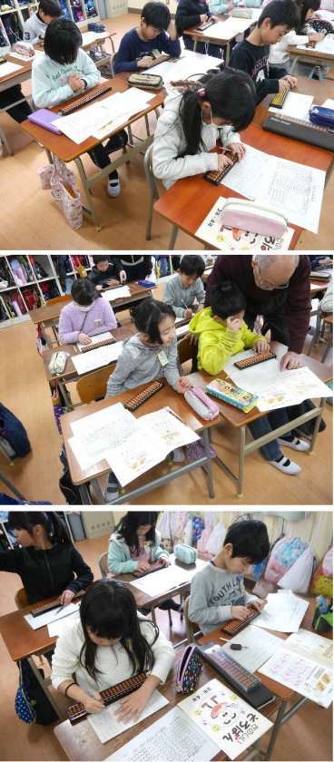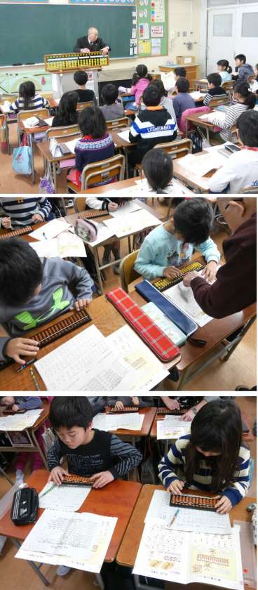 3年生では、今日から3日間そろばんの授業をおこないます。そろばん教室をされている先生にきていただきました。習っている子もいますが、大半の子どもたちは初めてのようでした。指づかいから丁寧に教えてもらいました。早く計算ができるようになるといいですね。