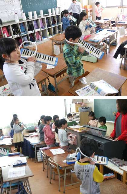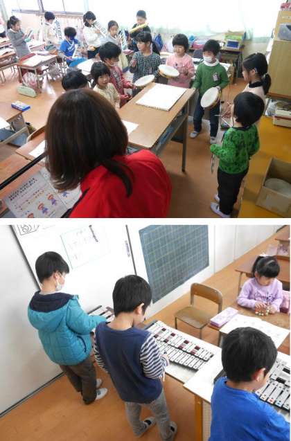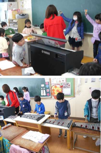 鍵盤ハーモニカや、鉄琴、タンバリンなどの楽器を皆で演奏しました。子どもたちからは、きれいに音があわさってよかったと感想をだしあっていました。皆で音をあわせるのは楽しいですね。