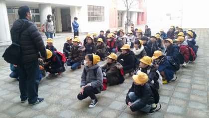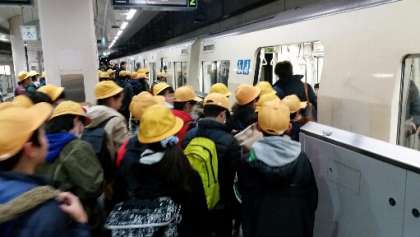 6年生が卒業遠足でキッザニア甲子園に出かけます。朝早くの集合に全員が揃いました。いってきます。
