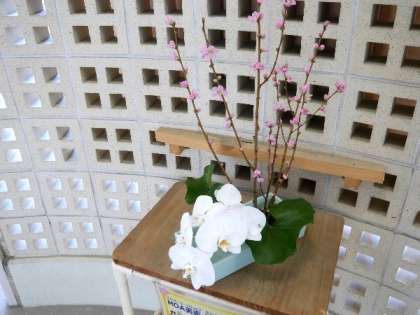 毎月、地域の方が玄関の生け花を活けていただいています。今回も春を感じられるとてもきれいな花たちですね。