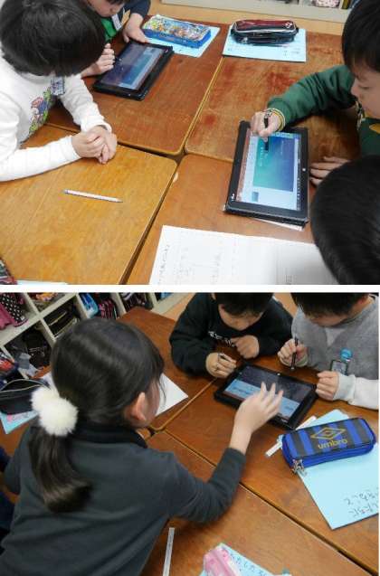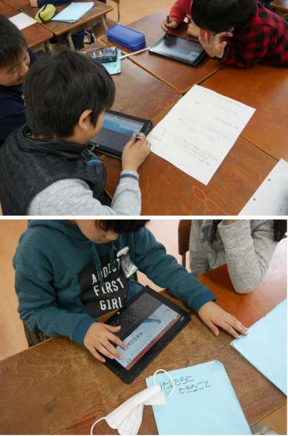 4年生でもタブレットを使って、プレゼンソフトで資料をまとめていました。