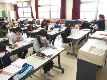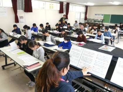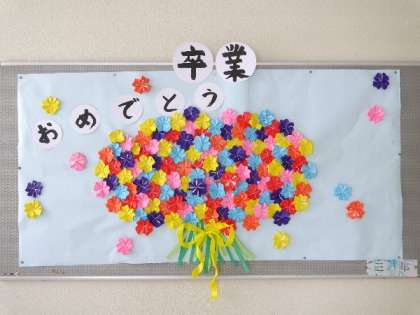 音楽では6年生が卒業式で歌う合唱曲の練習がはじまりました。各学年の掲示も卒業お祝いモードに変わっています。