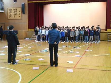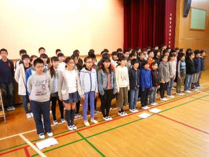 講堂で6年生が卒業式の練習をしています。呼びかけや合唱の練習がいよいよ始まりました。