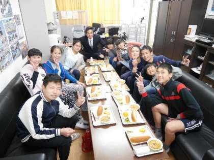 6年生と校長室での給食です。わきあいあいと話がもりあがります。