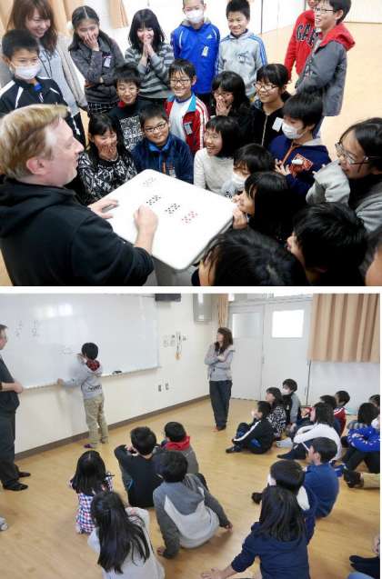 茨田北中学校から英語ネイティブのスティーブ先生が来てくれました。今日で5年生の授業は最後でした。スティーブ先生がとっておきのマジックを披露してくれました。絵で表したものを英語で答えたりして楽しい授業でした。