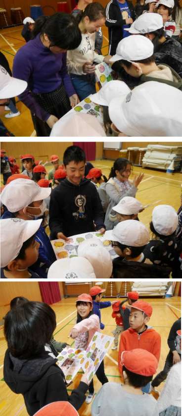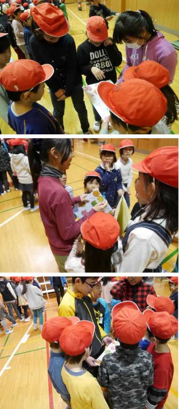 たてわり班の1年〜5年生で作ったメッセージカードを手渡しました。感極まる6年生もいました。とてもうれしいですね。メッセージを読んでいる姿が印象的です。
