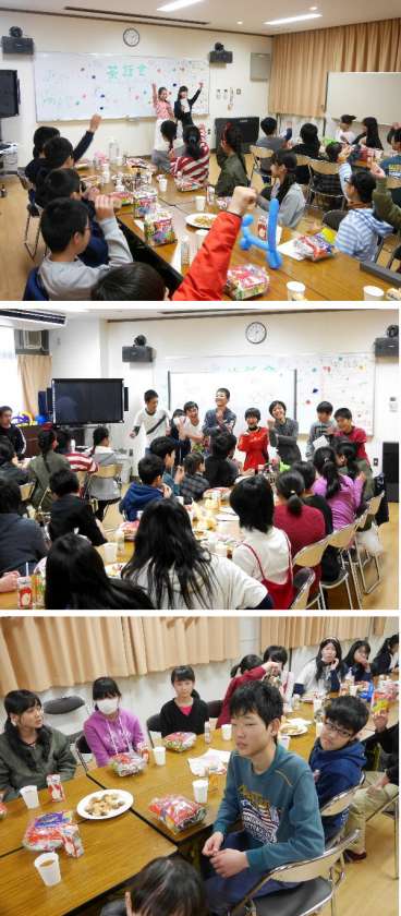午前中にクッキーなどを自分たちで焼いて準備しました。午後から多目的室で茶話会です。修学旅行の夜のつどいを引き継いで、楽しい催しとなりました。各チームの出し物に大もりあがりでした。
