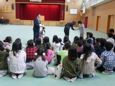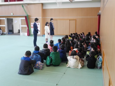 担任の先生の発表の後は、いよいよクラス分けの発表です。各学年が決められた場所に移動しての発表です。発表の仕方は学年それぞれですが、ドキドキする気持ちは同じです。いよいよ1年間のスタートです。一人ひとりがこの出会いを大切にしながら、それぞれのクラスが最高の学級になるように力を合わせてがんんばりましょう。