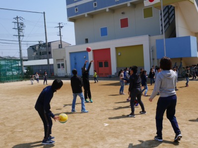 春本番!今日はとても暖かい1日でした。活動しやすい気温のおかげで、昼休みの運動場は大賑わいでした。ボールを追っかける子ども、オニごっこで走り回る子ども、遊具で遊ぶ子ども・・・みんな汗だくになって元気に活動していました。