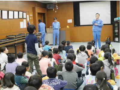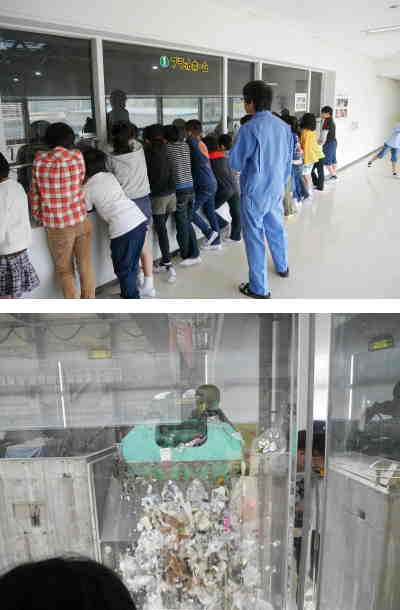 工場内の見学では、施設の大きさとごみの量の多さに驚く声があちこちで聞こえました。ひと通り回ったあと、部屋に戻って係の方からまとめのお話をしていただいたり、質問に答えていただいたりして見学を終えました。