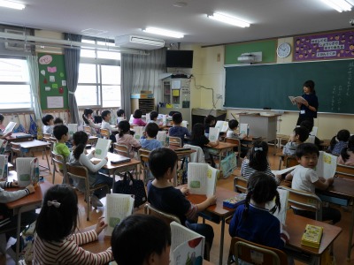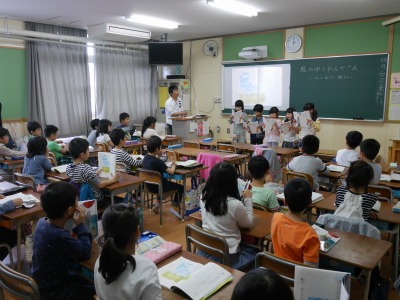 2年生は1組、2組とも国語科の「風のゆうびんやさん」の学習でした。音読の発表会などをしました。