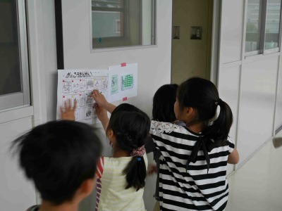 教室の前では、説明するだけでなくシールを取って、貼ってあげたりしている姿もたくさん見られました。2年生のみんなはとても優しいお兄さん、お姉さんとして大活躍でした。