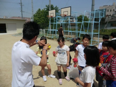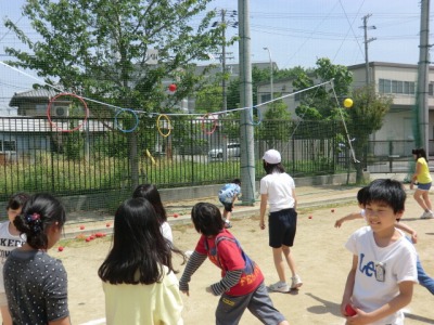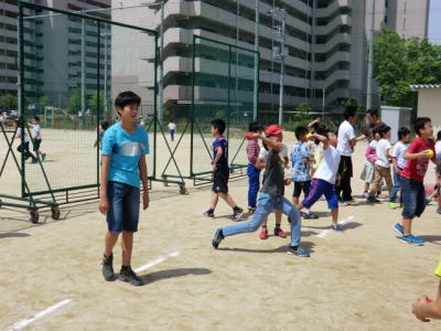 ソフトボール投げについてもがんばりました。ボールの握り方や投げ出すときの角度などの注意を聞き、汗をいっぱいかきながら取り組みました。体力向上の取り組みは、19日(金)まで続きます。