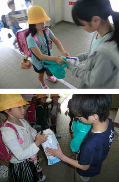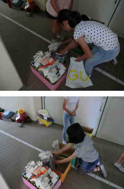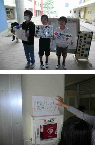 今日は「やけののやの日」でした。、この日まで各ご家庭で貯めていただいた牛乳パックを、環境委員会の呼びかけで回収します。回収した牛乳パックは環境局に持っていき、トイレットペーパーなどに再利用されます。次回は7月7日(金)に行う予定です。これからもご協力をお願いします。