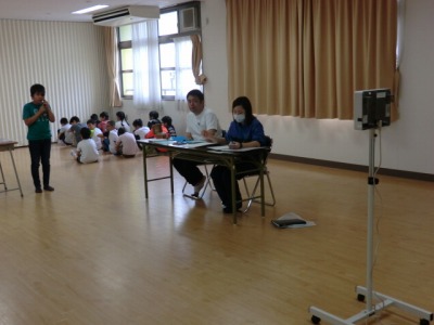 今日から視力検査が始まりました。5・6年生からスタートして明日が3・4年生、明後日が1・2年生の検査になります。今の子どもたちを取り巻く環境には、目に負担がかかる場面も増えてきています。疲れを感じたら適度に休ませてあげることが、目にとっても大切なことだそうです。