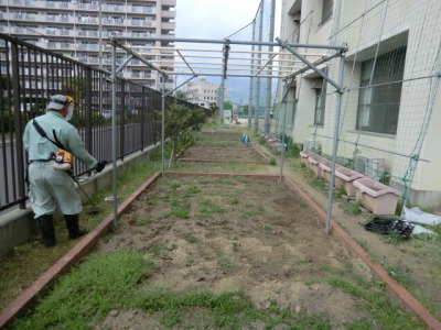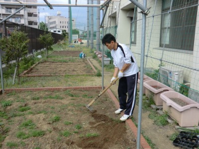 今は家庭訪問期間中なので、午後からの授業はありません。この時間を利用して、学校ではいろいろなことをします。例えば、学習園の整備などもその一つです。草を刈ったり、畑を耕したりしてこれからの学習に備えます。