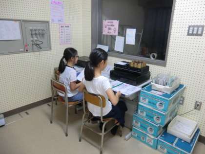 放送委員はお昼の時間を中心に活動しています。給食の献立を紹介したり、音楽をかけたりします。また、替え歌を作って掃除の仕方を教えてくれたりもします。現在、教職員のリクエストした曲をかける取り組みの準備をしています。