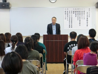 本日多目的室で、PTAの予算総会が開かれました。PTA会長のあいさつに始まり、本年度の役員・実行委員の紹介、平成29年度の活動計画案・予算案の審議と議事が進み、最後に校長先生のお話がありました。また、予算総会終了後に全委員会も行われました。平日のお忙しい中にもかかわらず、たくさんの保護者の方にご参加いただき、本当にありがとうございました。
