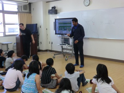 6年生も今日が初めてのC−NETの外国語活動でした。4年生と同様、自己紹介や質問タイムを中心に活動が進められました。質問タイムは言葉だけでなく、やわらかいボールを使ってゲーム形式で行われていました。これぞ、コミュニケーションのキャッチボールです!