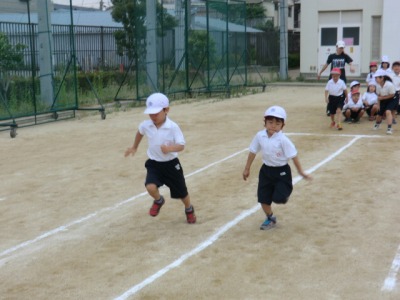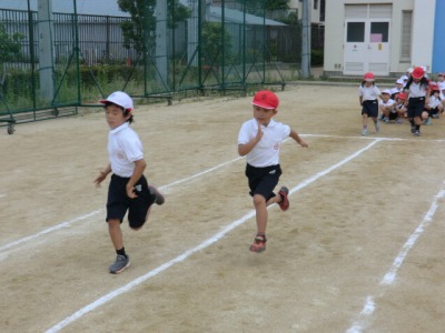 昨日に引き続き、今日は1・2年生の体力テストがありました。種目は50m走、ソフトボール投げそれから立ち幅とびです。今日はそのうち50m走と立ち幅とびを行いました。1年生にとっては初めての体力テストです。みんな力いっぱい取り組みました。