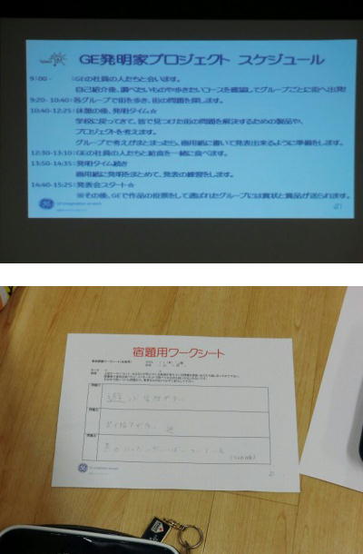 6時間目に来週行われるGEさんの出前授業「発明家プロジェクト」の事前学習がありました。これは6年生が毎年取り組んでいる学習です。来週の本番に向け事前に調べておくことや考えておくことの説明などがゲストティーチャーからありました。
