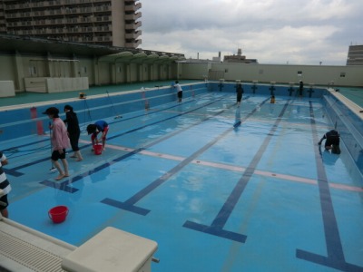 今日の放課後に職員全員でプール清掃をしました。いよいよ来週からプール水泳の学習が始まります。楽しみにしている人もたくさんいると思います。楽しく学習を進めるためにも、規則正しい生活を心がけ体調をしっかり整えておきましょう。