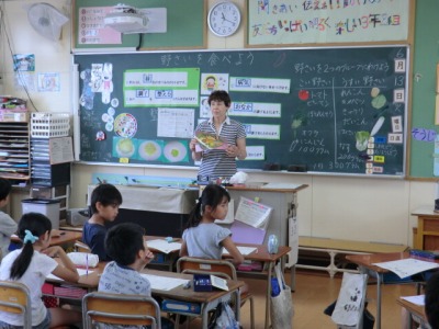 3年生でも栄養指導の授業がありました。テーマは「野菜を食べよう」でした。野菜に含まれる栄養やその働きを通して、緑色の食べ物の役割を学習しました。