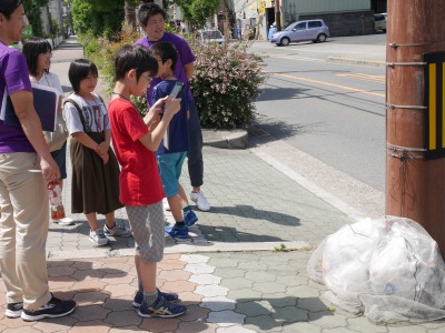 実際に学校の外に出て調査をしている様子です…