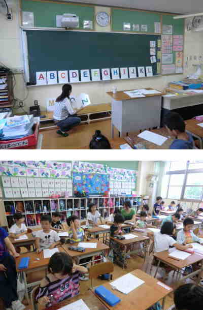 先週の5・6年生に続いて、今日は1・2年生で英語活動がありました。20までの数の読み方や数え方、バラバラになったアルファベットを組み立てながら文字を覚えるゲームなどをしました。明日は3・4年生で活動があります。