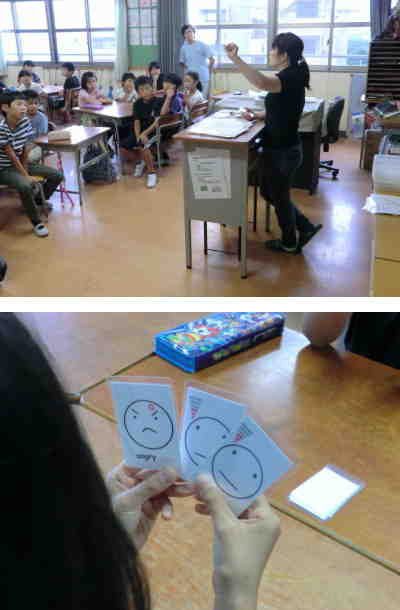1学期の外部講師の先生による英語活動は3・4年生で締めくくりです。自分の気持ちや身体の状態を相手に伝える表現の仕方を、カードゲームなどを使って楽しく学習しました。活動は2・3学期にも行う予定です。