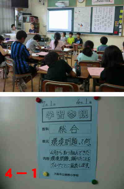 4年生の様子です。4年生は1組が総合的な学習の時間で環境についての発表会を、2組が理科で星についての学習をしました。