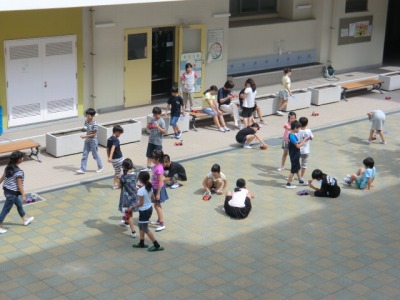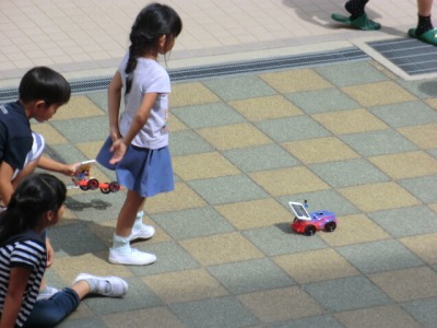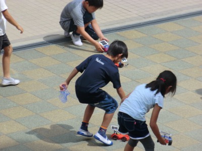 梅雨の晴れ間を利用して、4年生が光電池を使ったソーラーカーを走らせる実験を中庭でしました。強い日差しもあって、力強く走るソーラーカーを追いかける姿が、中庭のあちらこちらで見られました