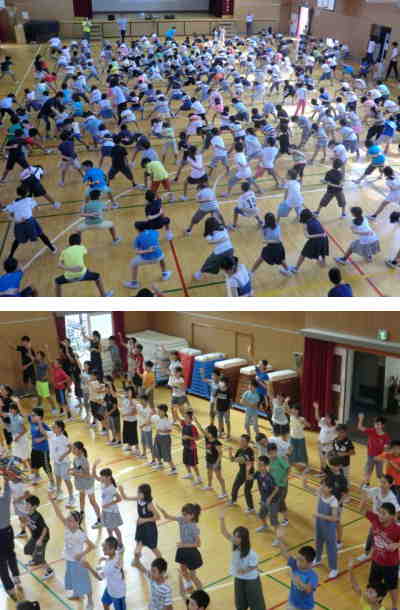 予定通り今日の集会の時間に、全員でよさこいソーランの練習をしました。2年生以上の児童は、ほぼ1年ぶりに踊るはずなのに、音楽が流れると自然に身体が動いていました。これが伝統というものなのですね。