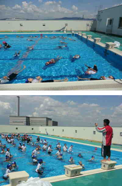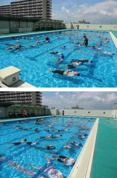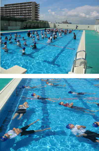学校の水泳学習では、泳力を伸ばすことはもちろんですが、泳ぎを身に付けることで、自分の命を守るというのも大切な目的です。その意味でも着衣泳は大切な学習です。ふだん着ている服装で水に浸かると、いかに動きにくくなるかを体感したり、そのときの対処法を学んだりします。ペットボトル1本あるだけで、救われる命があるということも学習しました。